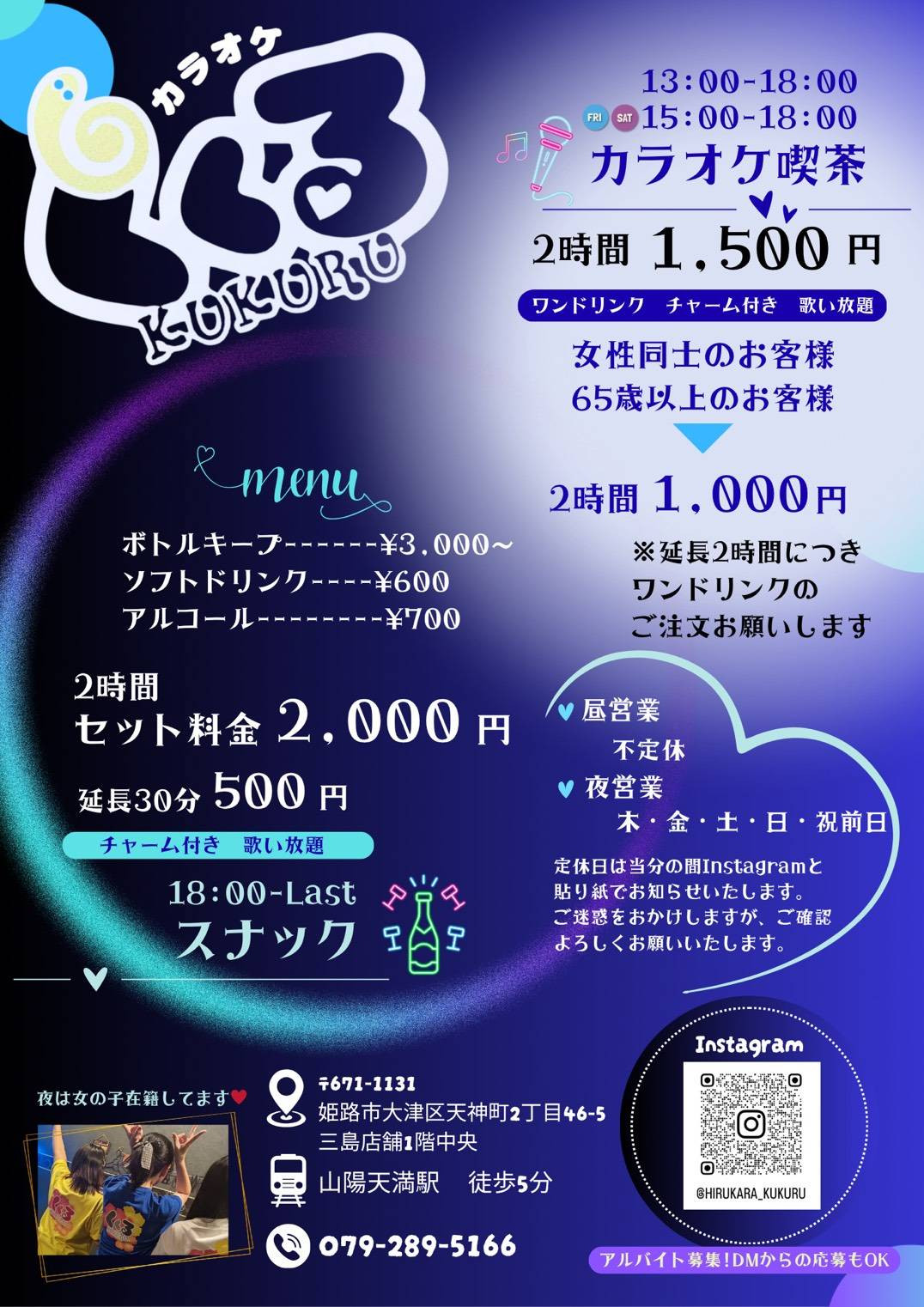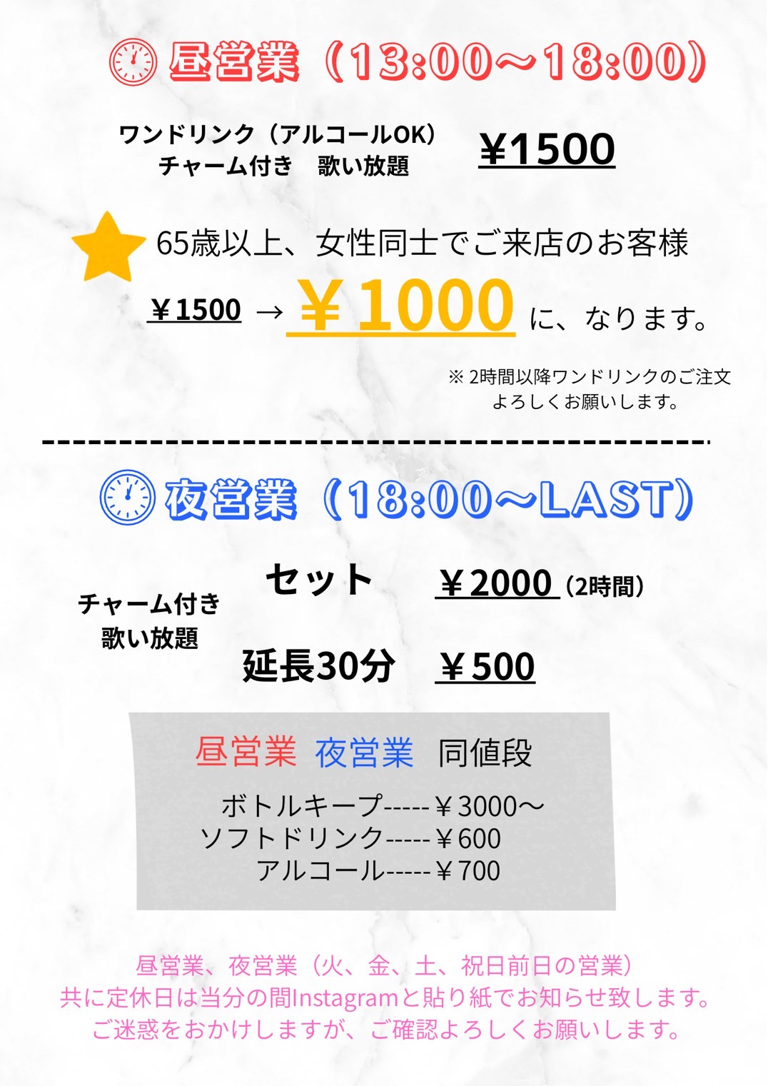 | 営業時間 | (月)(水)13時~18時 / (木)~(日)、祝日前15時~23時(24時) |