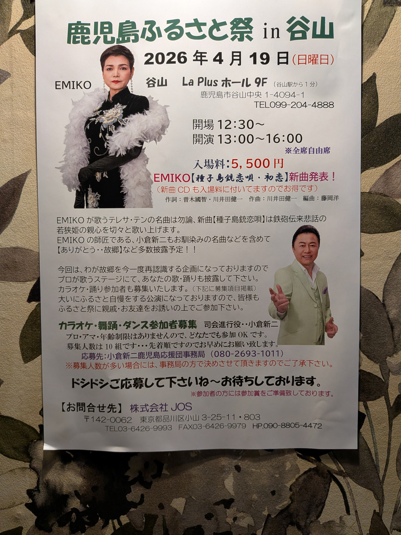 この店は音響がとても良い。今どき焼酎飲み放題と歌い放題で2,500円は本当にありがたい。高見橋電停から徒歩5分。鹿児島中央駅まで徒歩15分位。事前に相談すれば貸切もOK。また来ます。明るいママが待ってます。