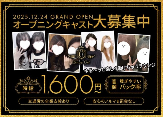 時給1600円〜各種高額バックあり! 週1~OK! 終電までOK! 送りあり! 未経験でも大歓迎! ママとチーママがしっかりサポートします! 制服貸し出し、鍵付きロッカー、ヘアアイロンなど完備!