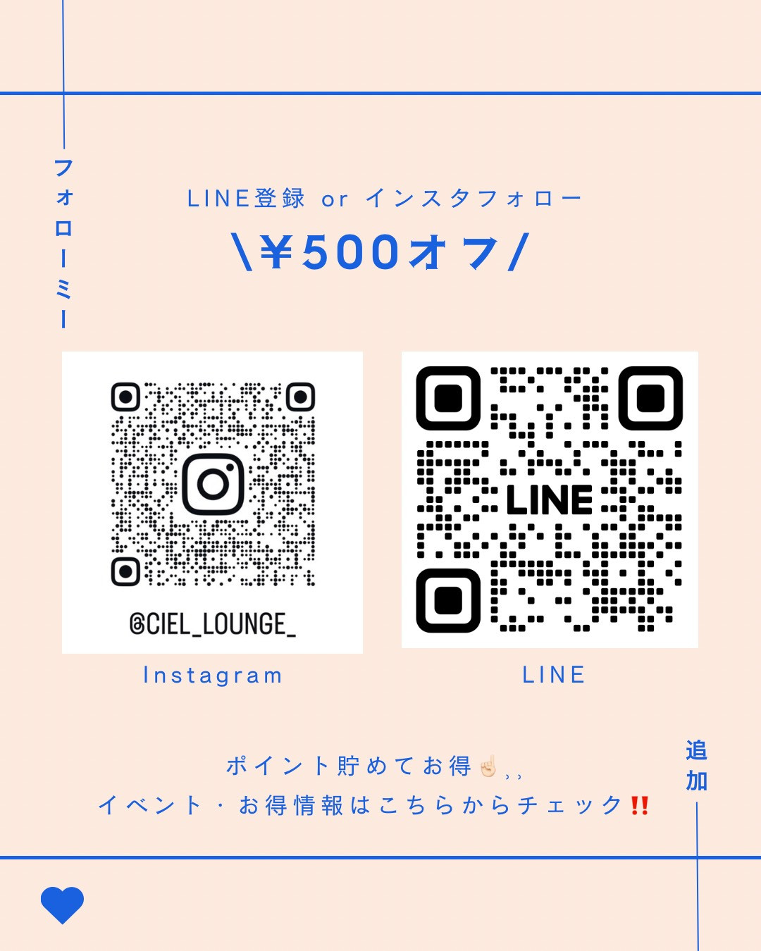 LINE登録かインスタフォローで割引♪